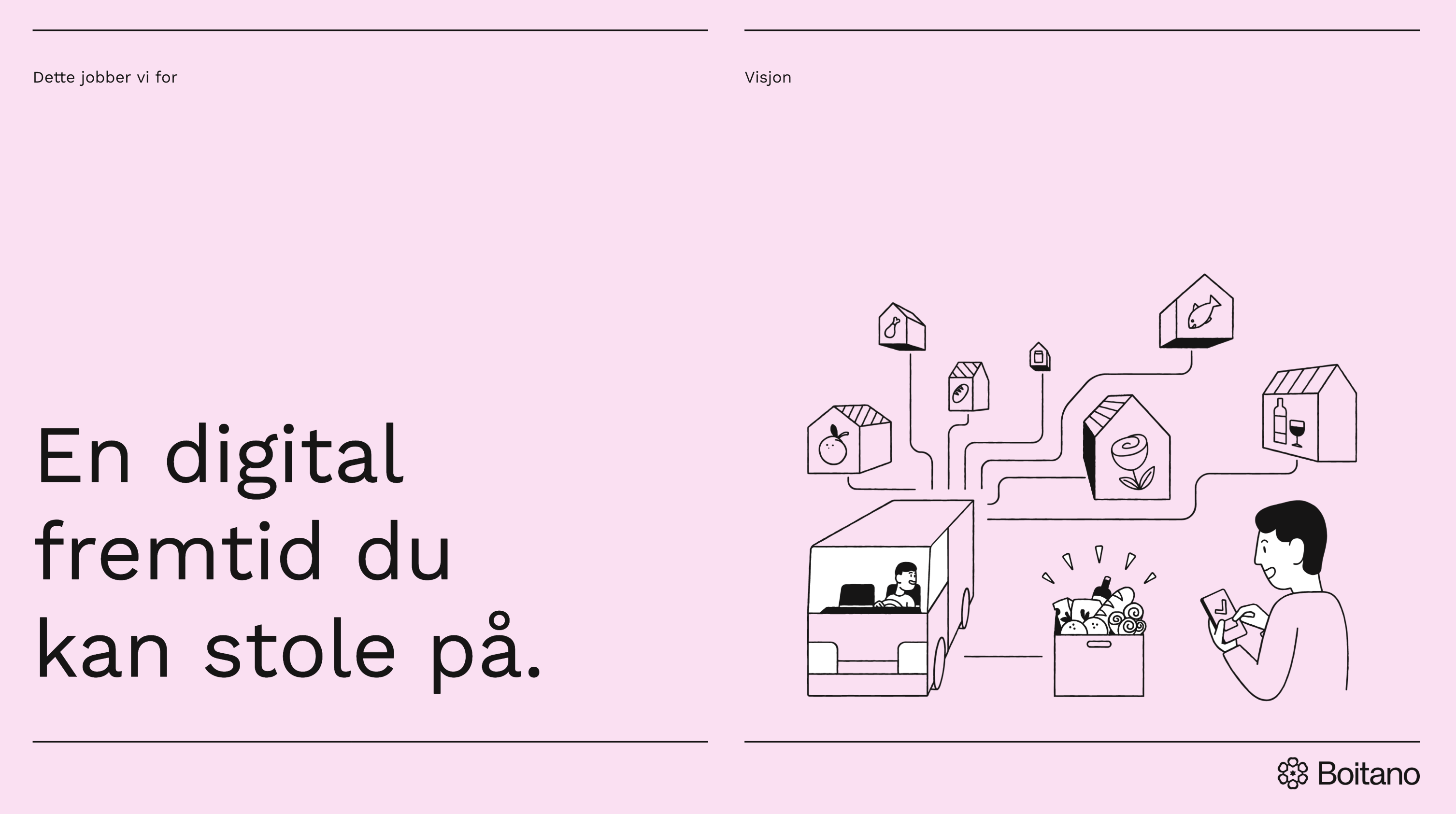 Du har blitt invitert til flere ulike introduksjonssessions de neste ukene i din kalender. Målet er å gi deg enda bedre innblikk i hvem vi er og ikke minst bli kjent med flere kollegaer. Vi ønsker at du skal få et helhetlig bilde av Boitano som organisasjon, bli kjent med kulturen og hvordan vi jobber, hvor vi kommer fra og hvor vi skal. Vi gleder oss til å bli bedre kjent med deg!